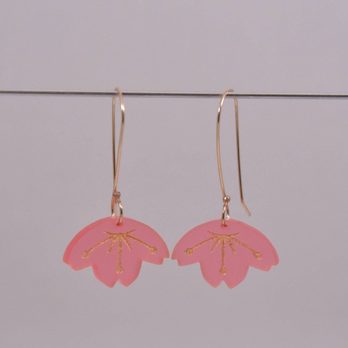 Cherry Blossom Earring in Pale Matte Pink Acrylic on Gold Filled Hooks