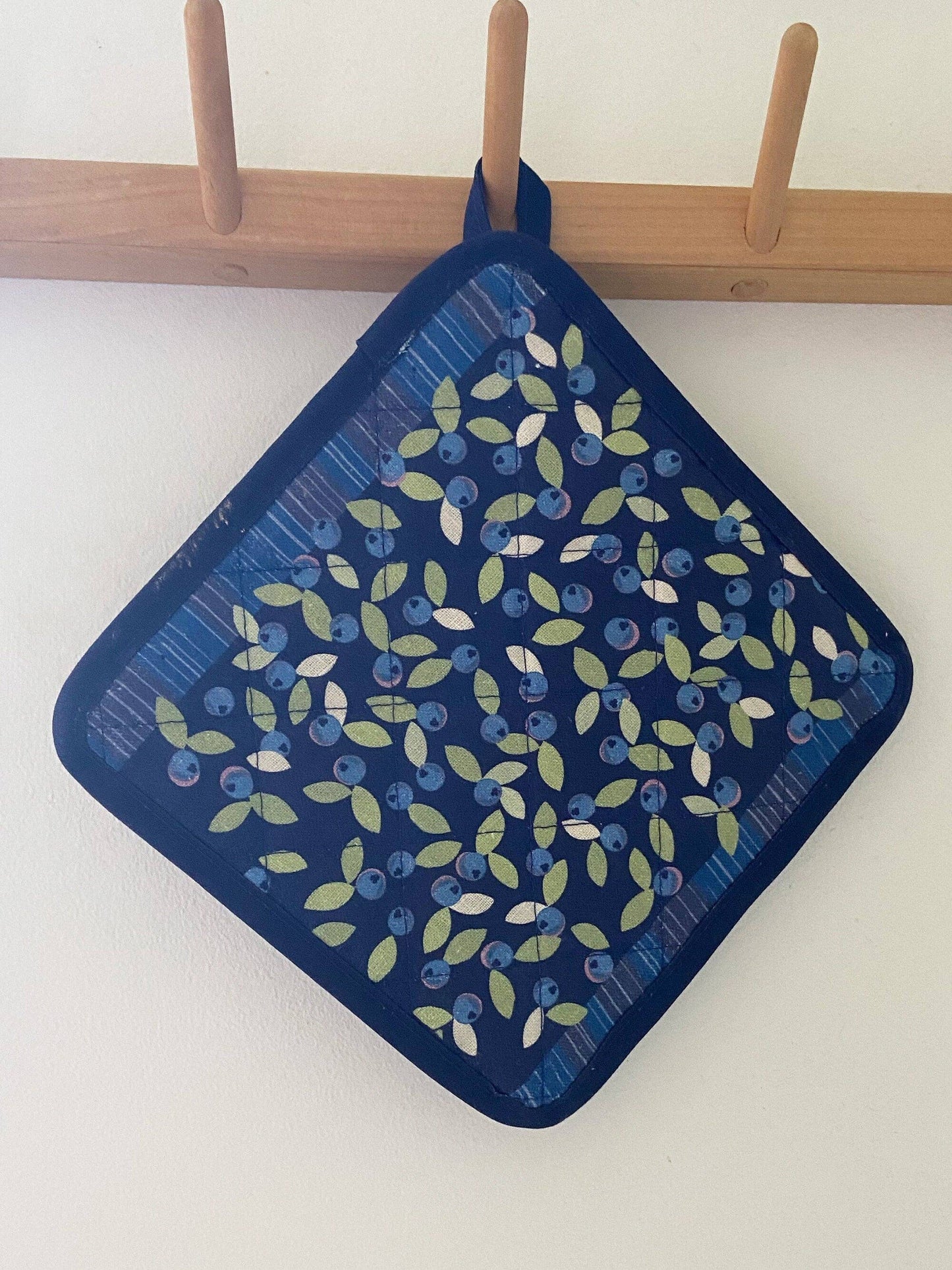 Add Be Wild blueberry pattern linen pot holder to the cart