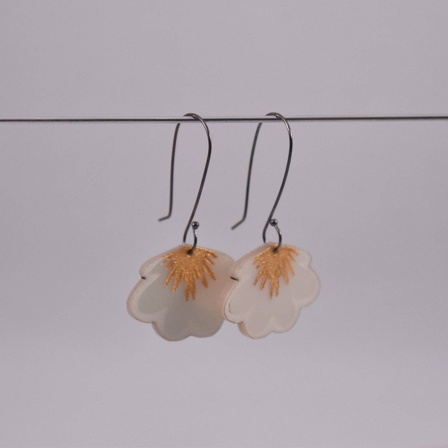 Art Nouveau Blossom Earring in Pearlescent Acrylic on Oxidized Sterling Silver Hooks