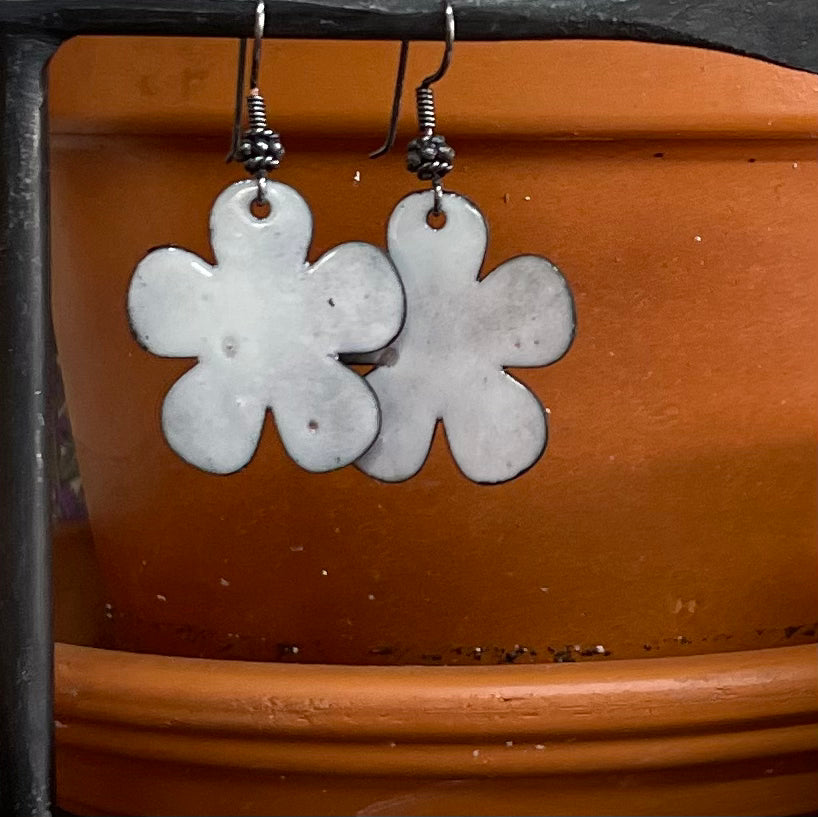 Copper + Fire + Glass, sterling ear wires.