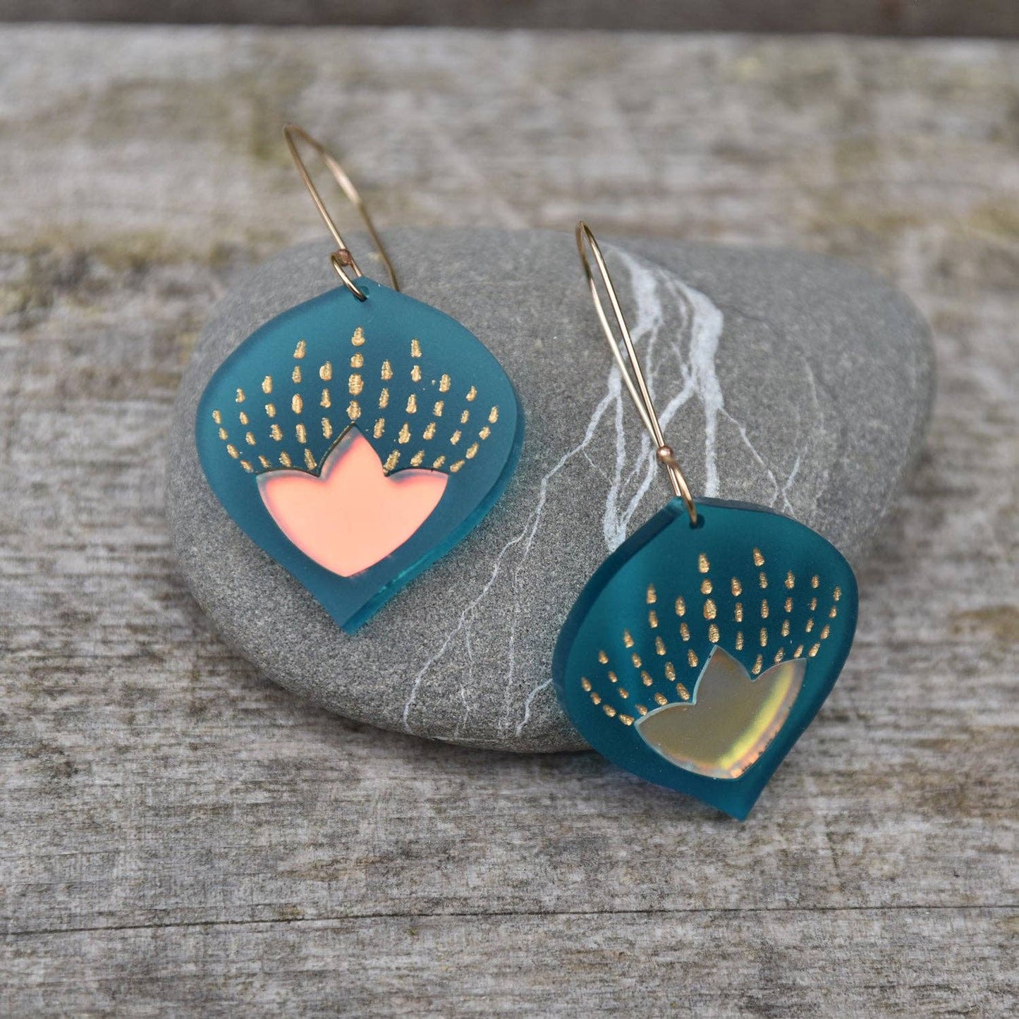 Onion Flower Earring in Frosted Teal Acrylic on Gold Filled Hooks