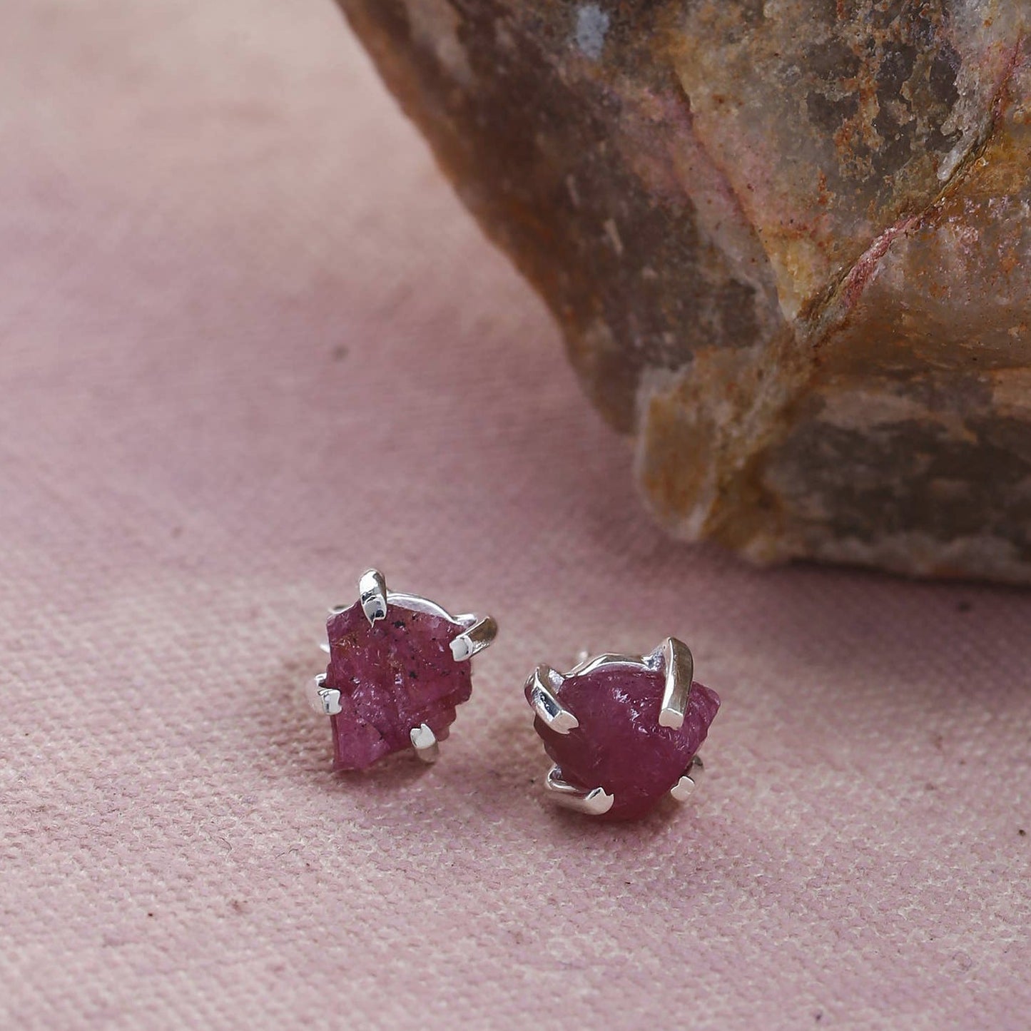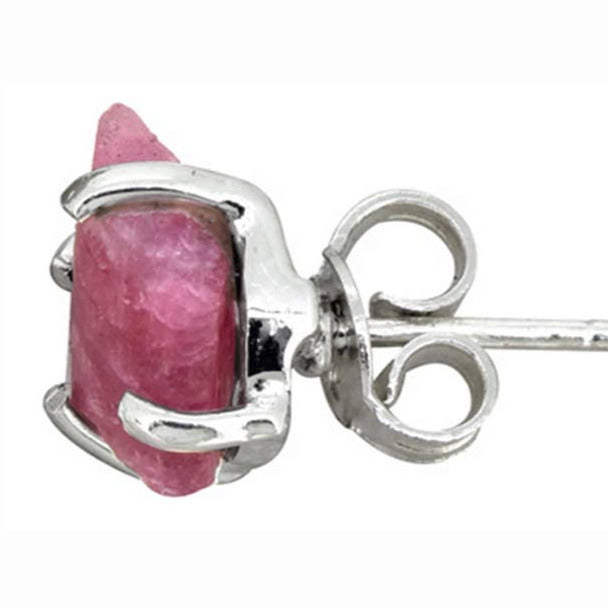 Raw Pink Tourmaline 925 Sterling Silver Stud Earrings