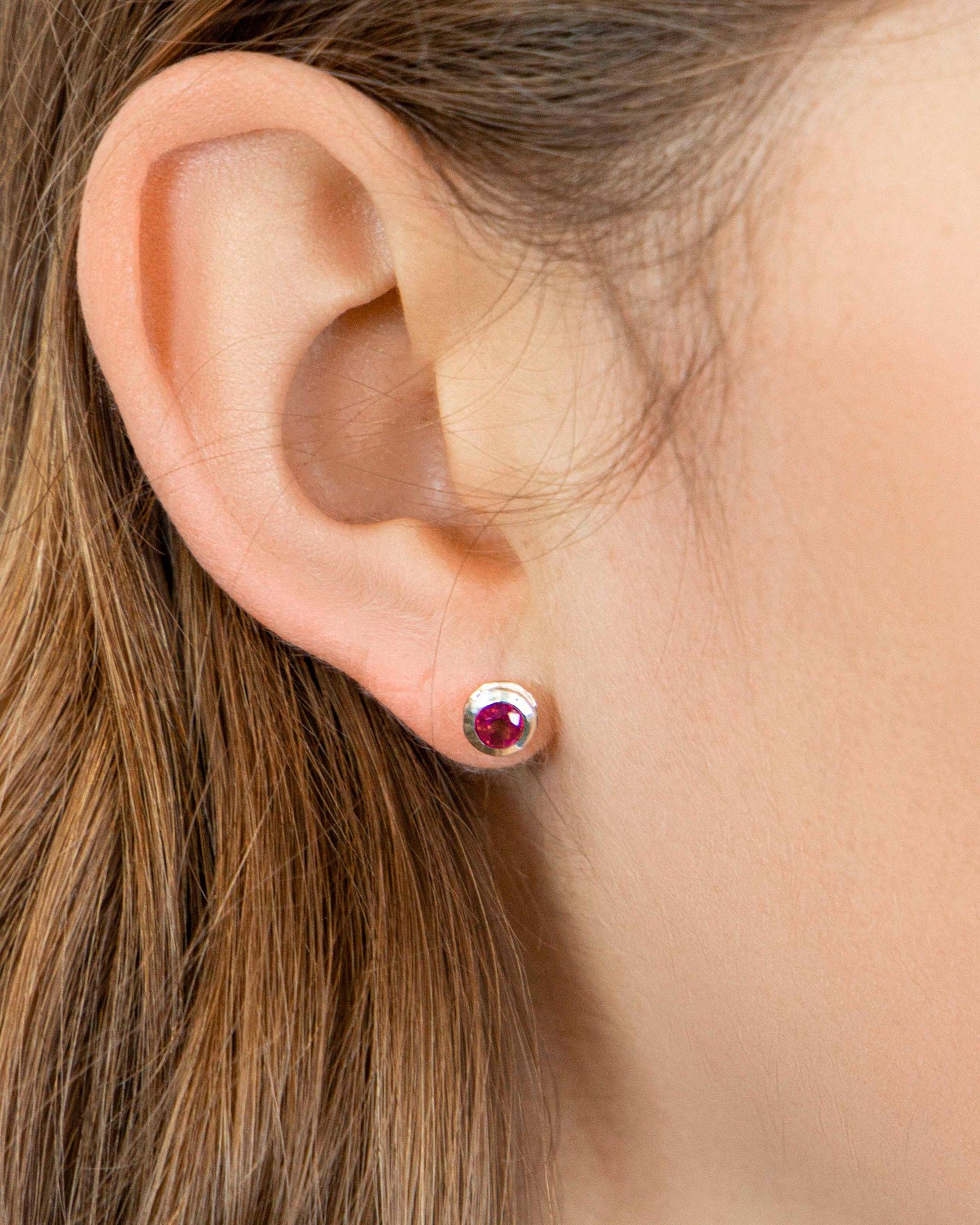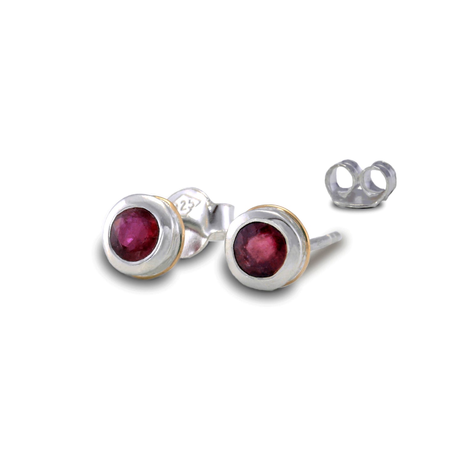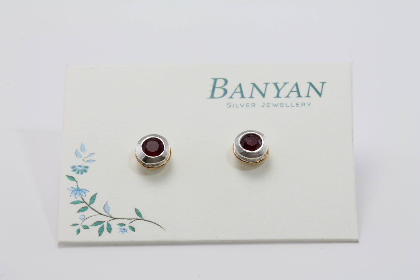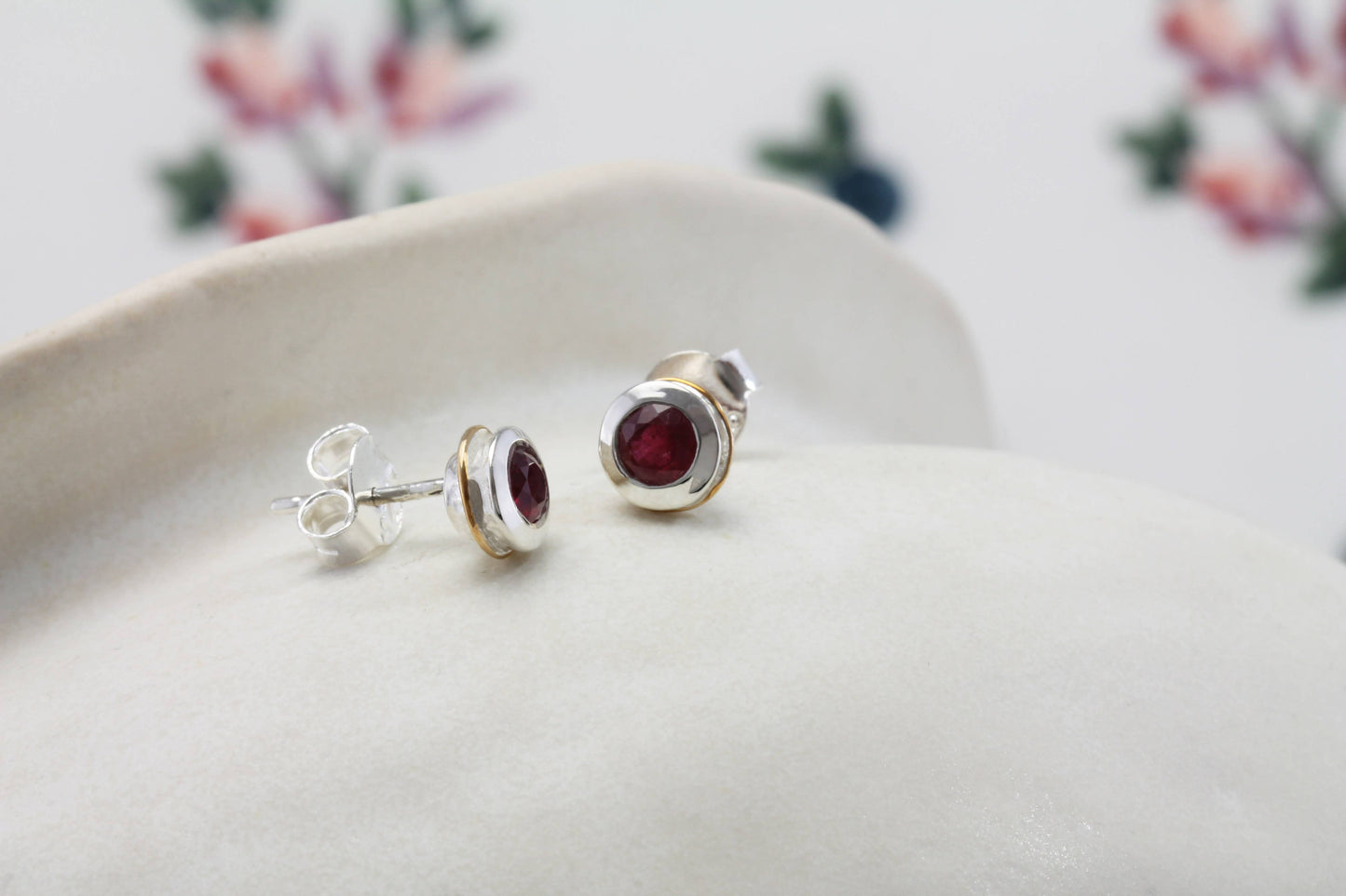 Silver Ruby Stud Earrings with delicate 14 carat gold