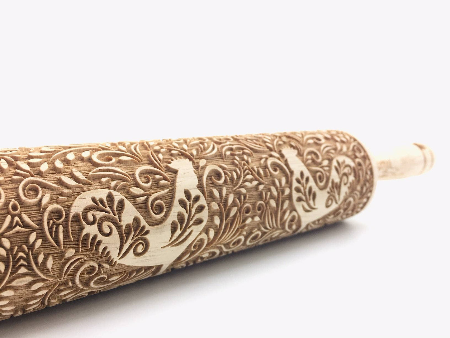 Embossed Floral Rooster Rolling Pin-Pottery