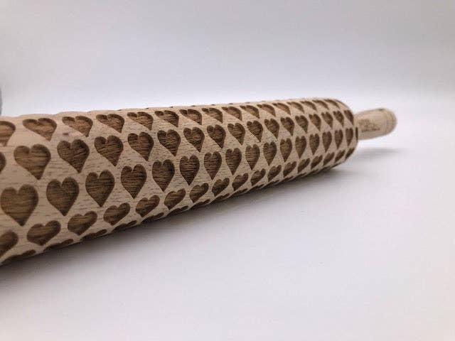 Small Hearts Embossed Rolling Pin For Pottery & Baking