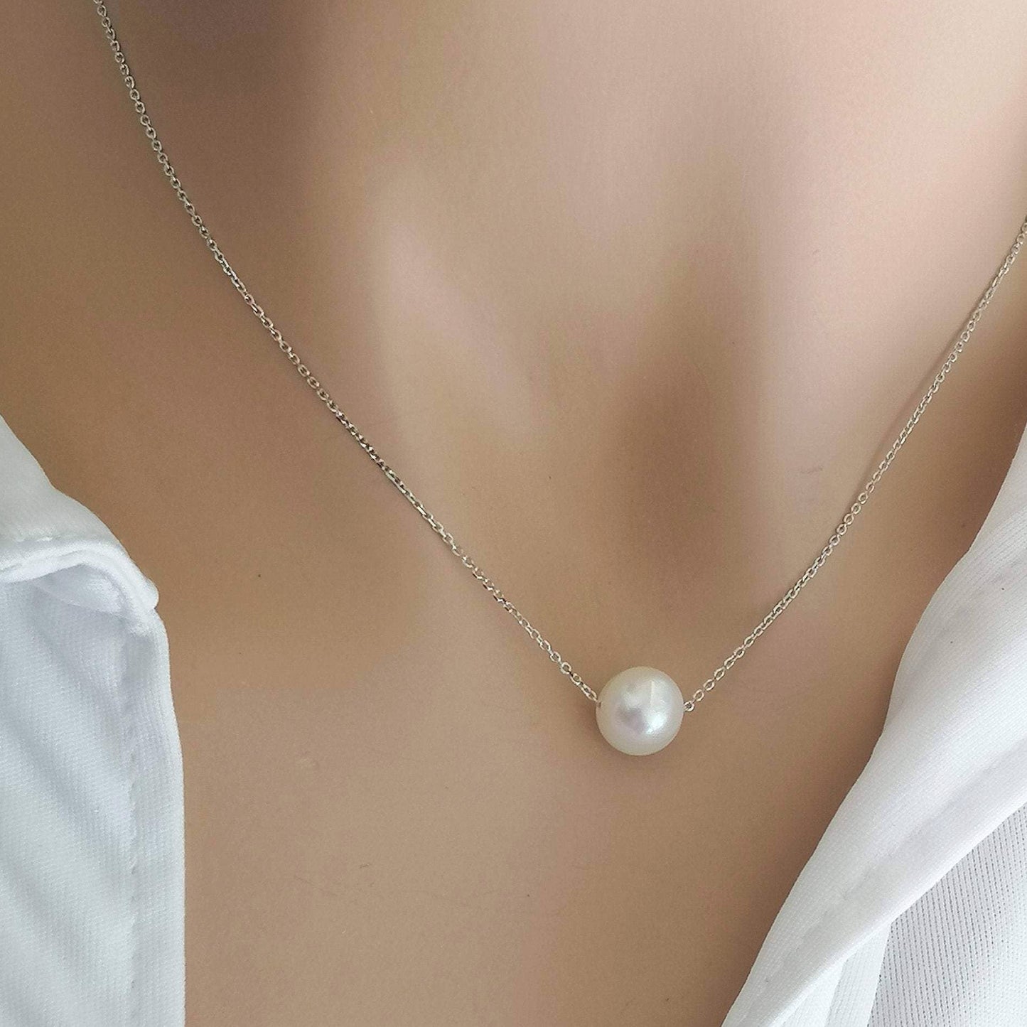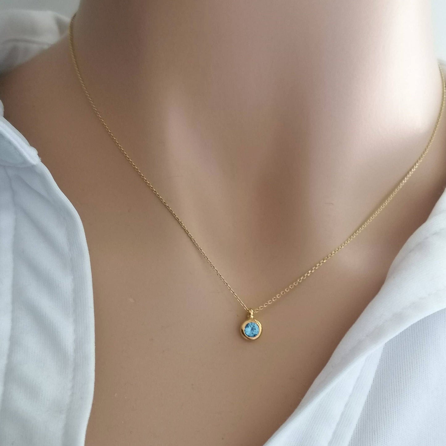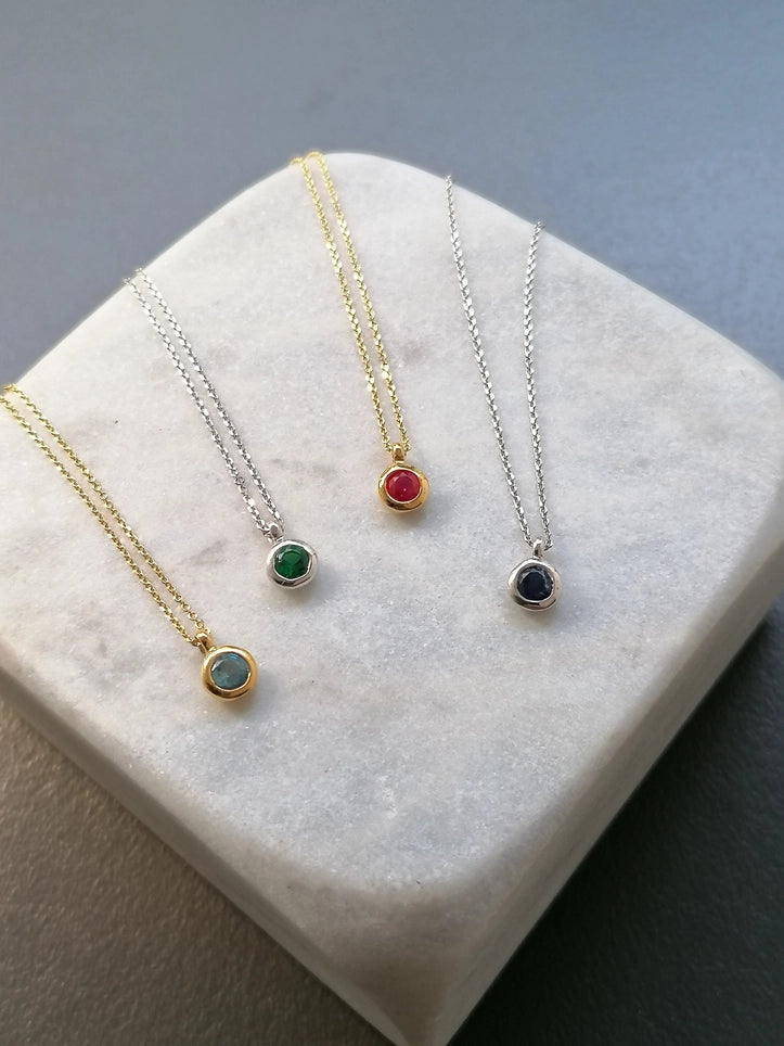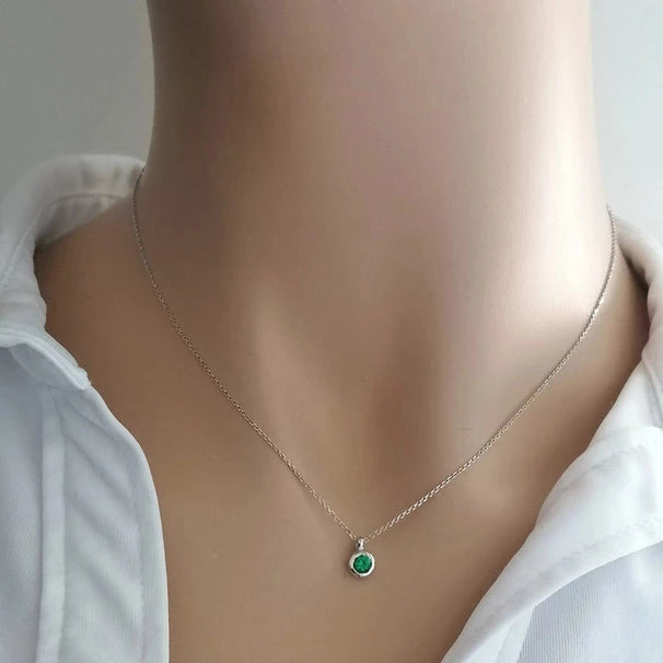Delicate and beautiful handmade White Gold over Sterling Silver Gemstone Necklace, flashing a round shaped gemstone, available in the plating of your choice.