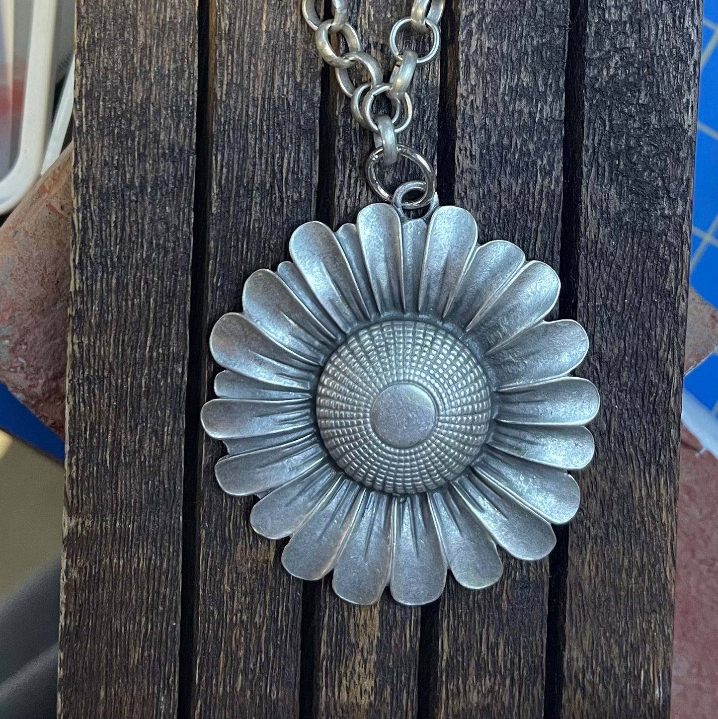 Statement Piece. 2.5" Silver over Pewter on a 20" Silver Chain