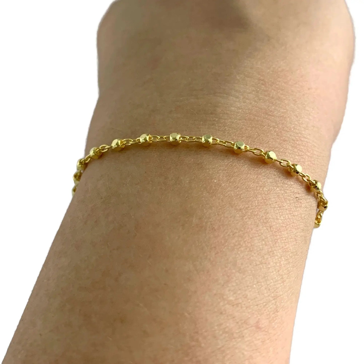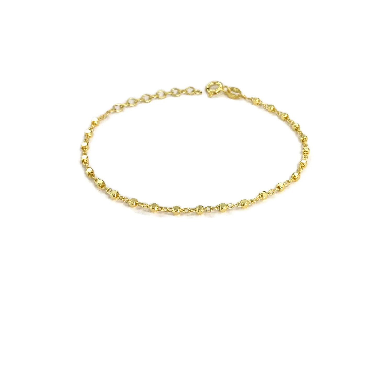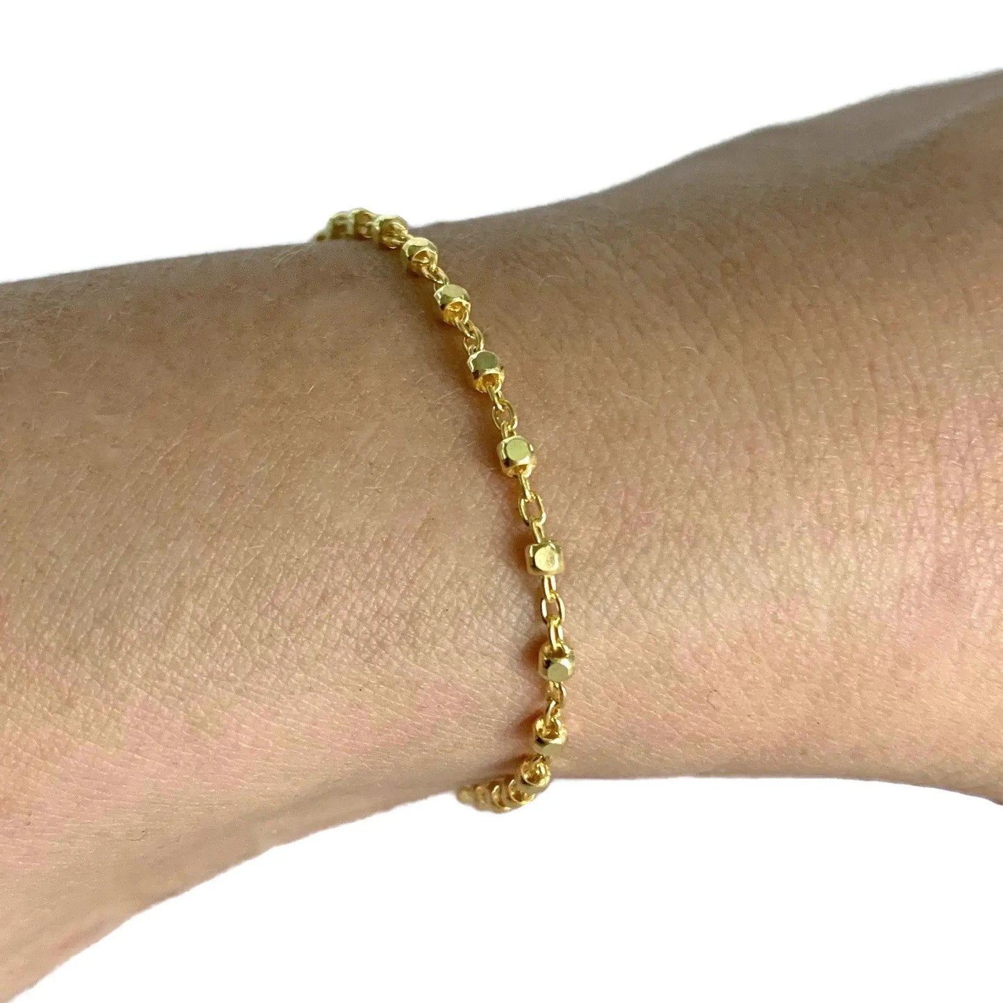 This chain bracelet is 14K Gold Vermeil over Solid Sterling silver. It's a beautiful shiny Satellite chain with a cable chain base. It's the ultimate everyday bracelet, perfect to wear alone or stacked.