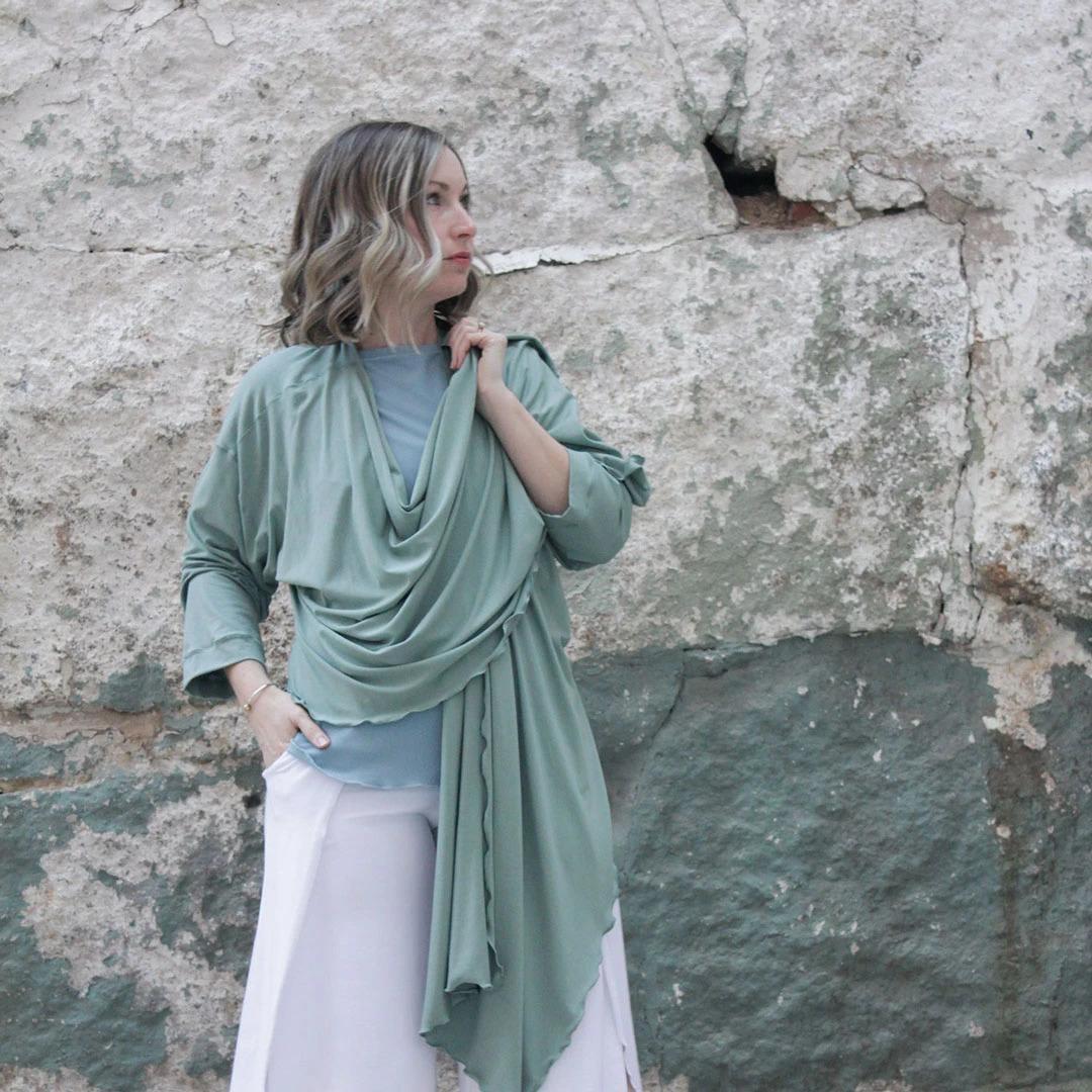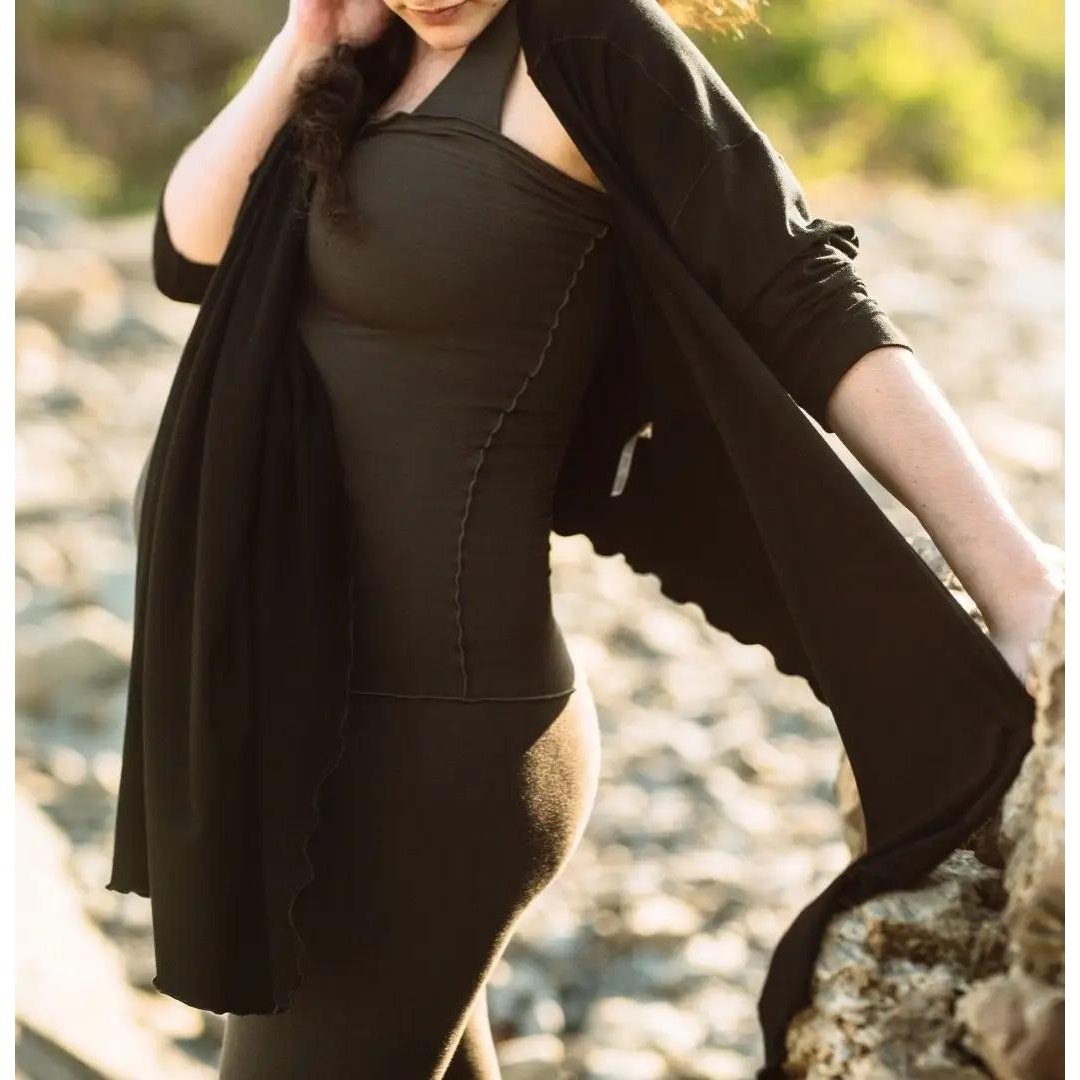 Tie close to the body or wear as a short bolero. The styling options are limitless! The prima graces curves beautifully.