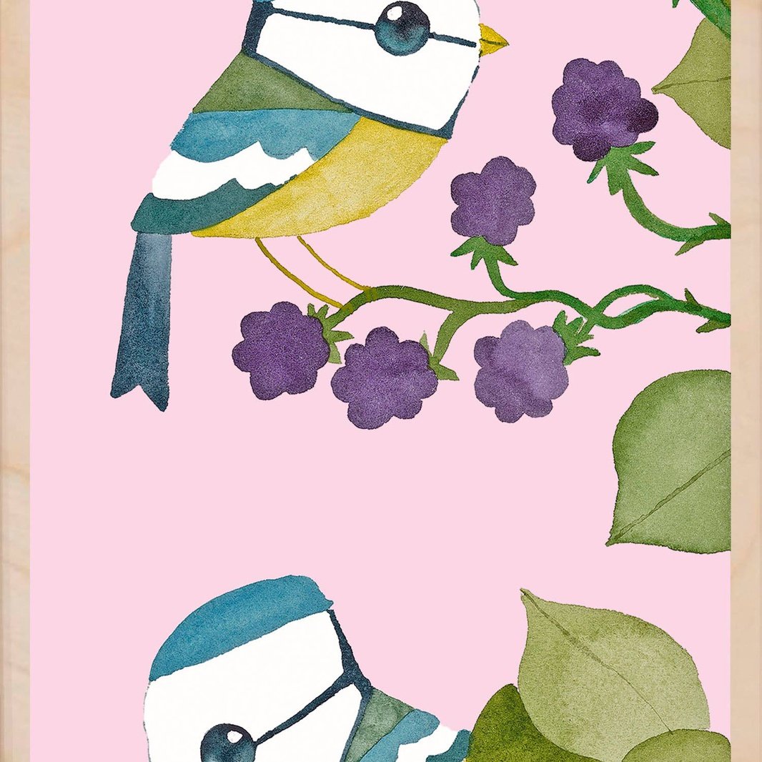 'Blue Tits' Wooden Postcard. Original illustration ©Matt Sewell’s Birds.