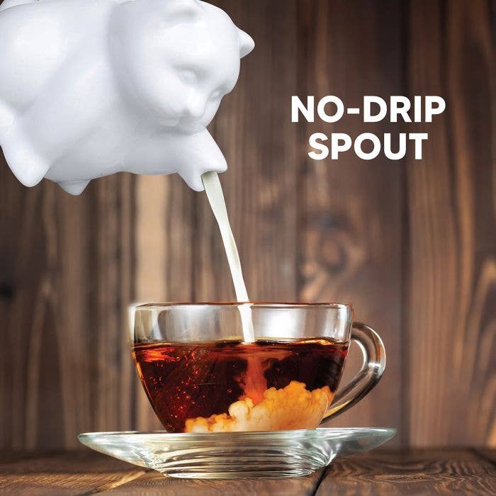 HIC Kitchen's Fine Porcelain Mini Cat Milk Creamer Dispenser is perfect for every coffee and tea service and for enjoying hot chocolate, spiced cider, even warm milk and honey, and other favorite beverages. The drip-free spout makes pouring mess free and saves tablecloths from stains. It's perfect for single servings of cream and milk, and works great for salad dressings, too. It performs equally well for hot or warmed contents, like hot maple syrup, drawn butter, au jus, and gravies. The easy-hold handle offers a comfortable grip during use and keeps fingers away from hot contents. It's great as gifts for tea lovers, or hostess gifts and coffee gifts for at-home baristas.