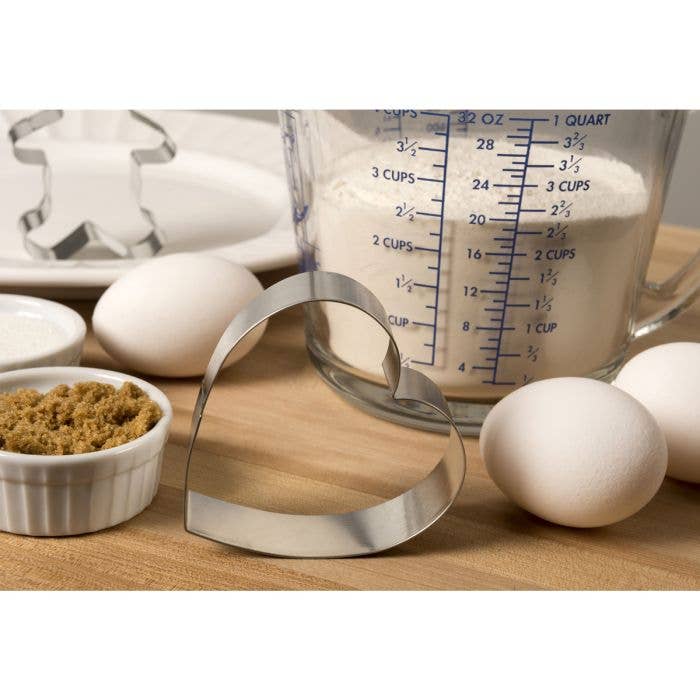 Mrs. Anderson's Baking Heart Cookie Cutter Set makes baking homemade cookies fun for kids of all ages. Fun and easy to use, simply mix cookie dough and chill for at least 1 hour. Roll out chilled dough evenly on a cool, lightly floured surface and dust a bit more flour over top. Press cutter downward to cut dough and dip the cutting edges in flour between each cut to keep the dough from sticking. Bake cookies according to recipe. A great addition to baking tools for making biscuits, brownies, decorative pie crust, cake, fondant, craft clay, and more. These metal cookie cutters work just as nicely for cutting pastry dough as they do for working with crafting clay. Made from stainless steel, Mrs. Anderson's Cookie Cutters are easy to use and clean. Set includes 5 graduated cutters (1.5, 2, 2.25, 3, 3.5-inch x 0.75-inch high) in a reusable storage container. Dishwasher safe for easy cleanup. Brought to you by HIC-Harold Import Company.