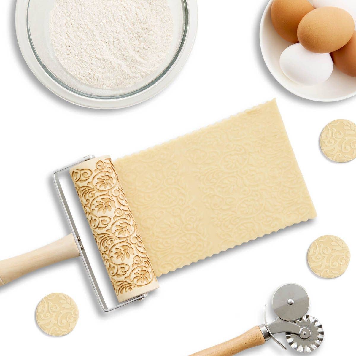 Mrs. Anderson's Baking Floral Scroll Mini Embossing Rolling Pin stamps a high level of detail on dough and fondant in a single easy roll to make decorative cookies, pie crusts, and cakes. Ideal for home bakers and pastry chefs, the deeply etched design imprints spectacular detail into the top of rolled dough and fondant. Ball bearings inside the cylinder roll it smoothly, every time. Mix and match with other embossed rolling pins for multi-patterned cookies. For best results, use an embossed cookie recipe for a dough that won't spread or lose its design during the baking process. Be sure to chill the dough for at least 30 minutes before rolling it out.