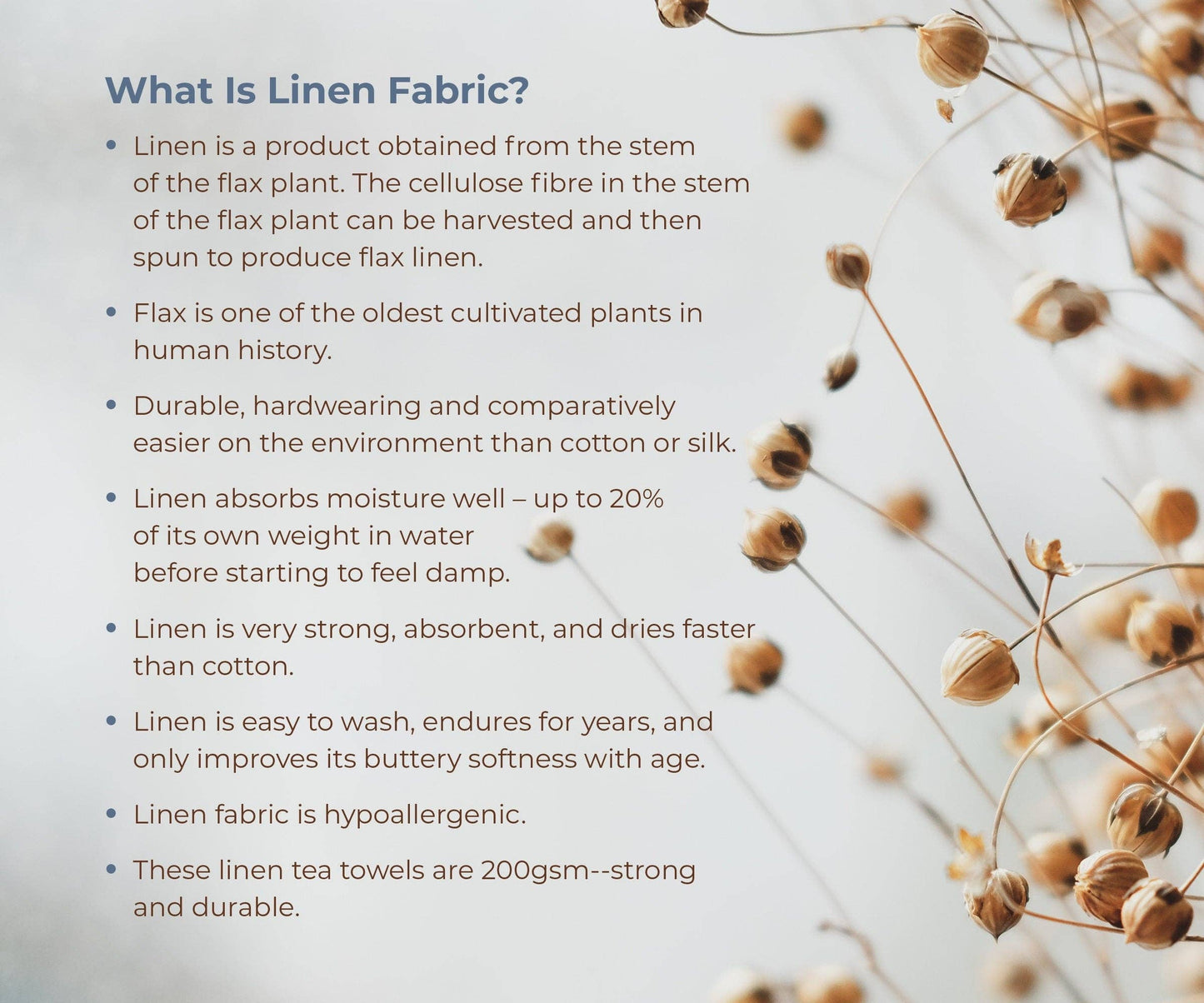 • 100% Linen, 200gsm with cotton trim